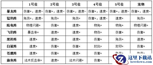 为了方便大家了解阵法,这里以图表形式展现阵法相应位置和宠物享受的效果加成。