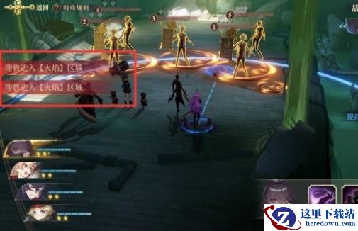 游戏开始时,会提示玩家引诱敌方进入火焰地形。我们只需乖乖照做就好,本关敌人的伤害和血量都极高,按照我们解锁支线的等级,想要“拼伤害”通关是根本不可能的。所以我们开局直接移动幻书,根据下面图片的站位,肉身挡住不死者。这里有一个小细节,不要冲过头了反而让自己进入火焰区域,火焰伤害极高,2下我们就被烫死了,别问我怎么知道的。