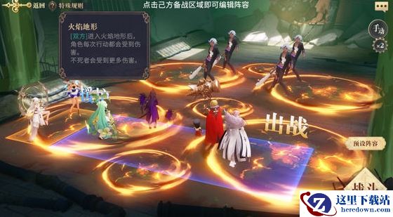 本关的地面铺满火海,双方每次行动后都会扣血,此时白芷的作用就很关键了,只要能奶的住,哪怕输出地点都能把对面耗死。