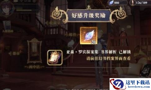 当幻书好感度到达一定等级,会有额外的回忆剧情解锁。幻书会出现在主界面里,此时点击幻书,就可以进入幻书专属的好感剧情,完成剧情后可以获得传世玉叶奖励。好感度等级越高,解锁剧情后获得的奖励就越丰富,除了传世玉叶以外,还能提升幻书的援护技能等级。