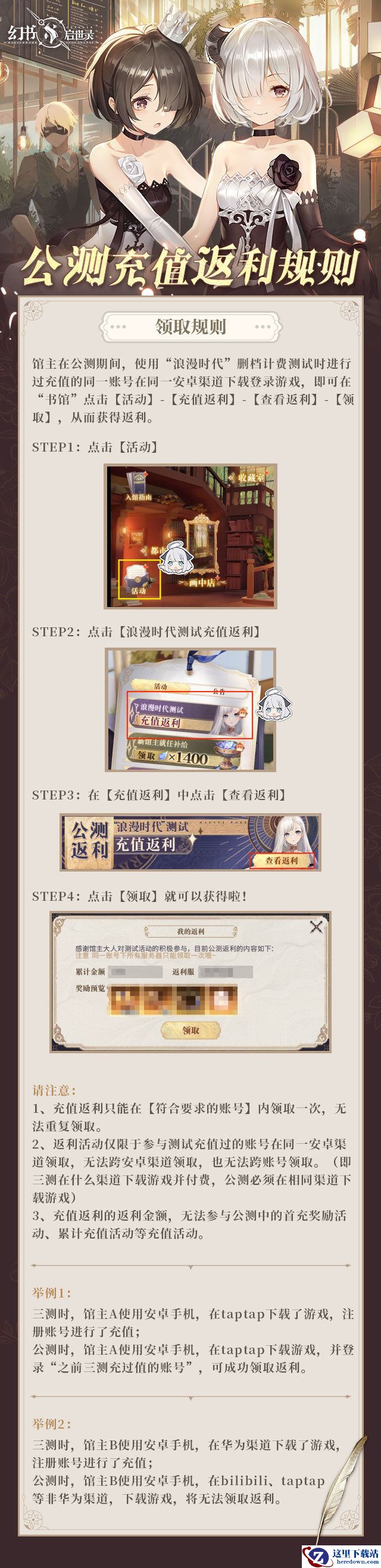 以上就是小编整理的关于《幻书启世录》公测充值返利领取方法介绍的全部内容,想获得更多相关游戏攻略可以关注手游网。