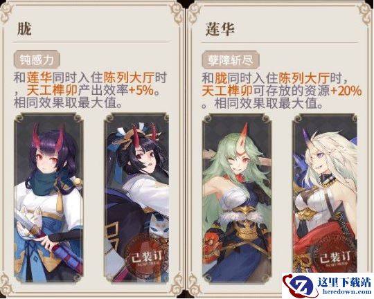 在陈列大厅中,书界奇物“天宫榫卯”由于能够产出升级所有书界奇物的道具榫卯,因此它的生产效率是最重要的。在幻书好感度达到3后,会解锁相关的入驻加成,我们可以根据不同的加成来选择入驻幻书。其中《画图百鬼夜行》胧和《今昔物语集》莲华同时入住时,不但能提高天宫榫卯的产出效率,同时还能提高榫卯的存放量,因此是最优选择。