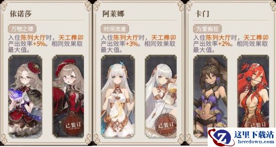 其次《自然哲学原理》依诺莎、《沙之书》阿莱娜和《卡门》卡门这三本幻书也能提升榫卯产出效率,因此可以根据选择任意一位入住,以稀有度高的优先。