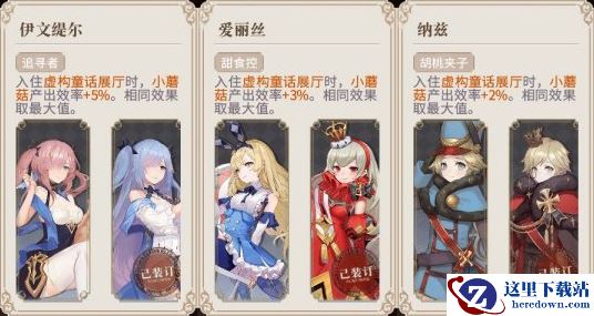 在虚构童话展厅中,书界奇物“小蘑菇”可以产出提高幻书好感度的礼物,因此我们需要优先将能够提升小蘑菇产出效率的幻书入住房间。其中《爱丽丝梦游仙境》爱丽丝和《胡桃夹子》纳兹都可以提升小蘑菇的礼物产出效率,并且是较容易获得的幻书,可以选择任意一位入住。当然如果你从玫瑰中培育出了《安徒生童话》伊文缇尔,她就是最好的选择。