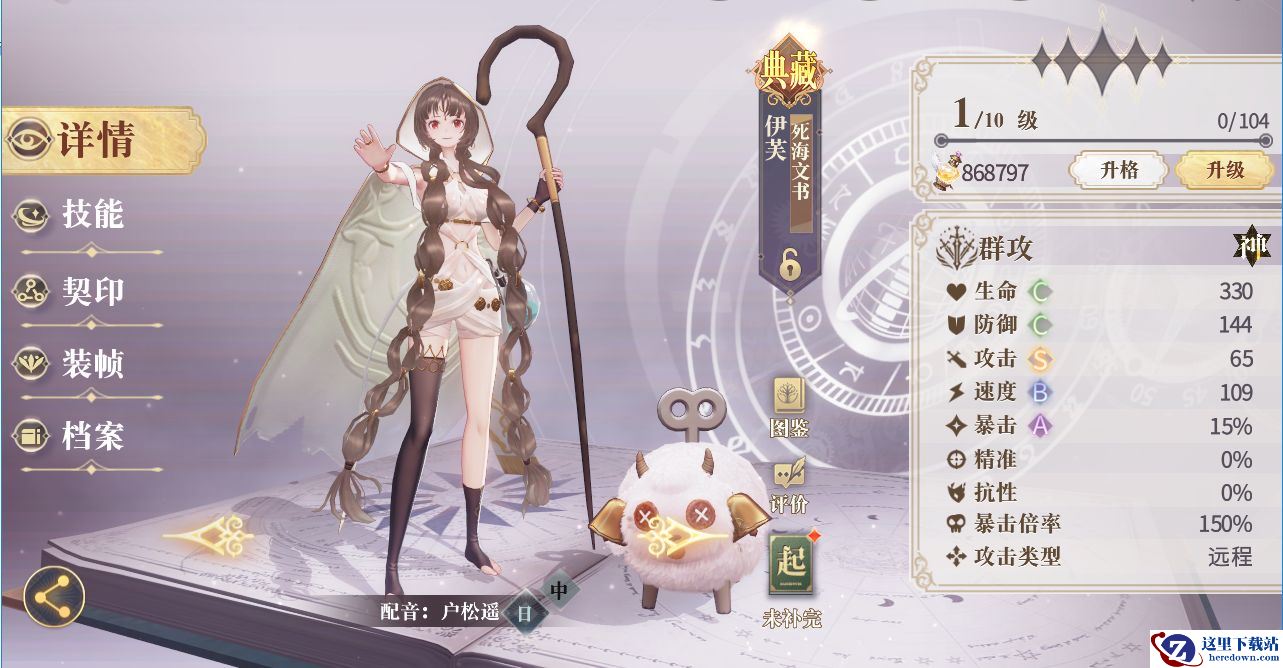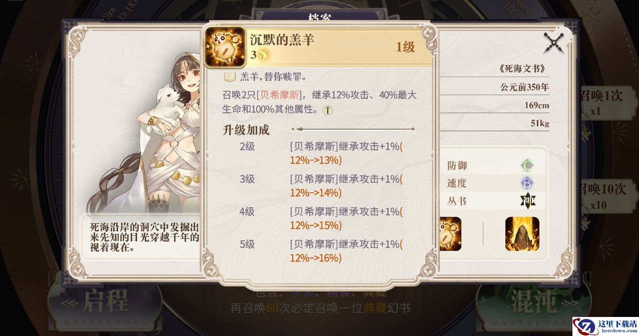 《死海文书》伊芙的面板比较出色,攻击力评级为S级,作为一本非主流输出幻书,这个属性相当理想。稍有遗憾的是速度属性,仅有109点,所以在搭配契印纹的时候优先堆叠速度为优。