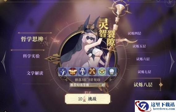 灵智裂隙一共三类关卡,各有八层。从第七层开始掉落5星契印,每次刷取需要消耗10体力。