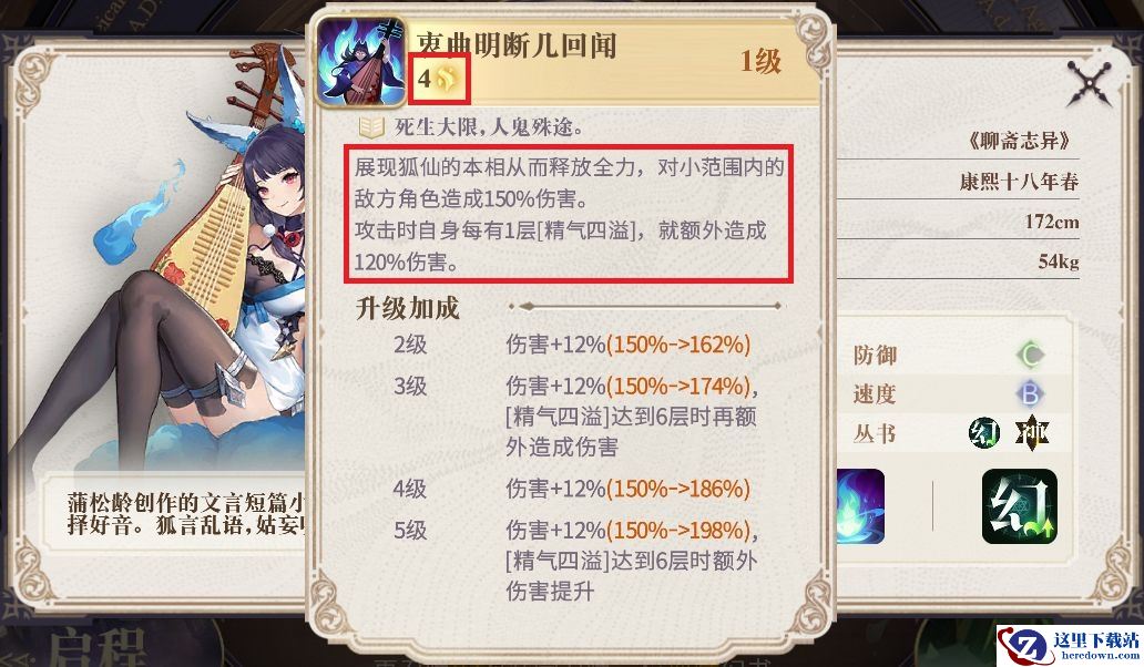 婴宁的被动会在我方发动消耗能量的技能后获得一层增伤BUFF,当她发动书界技能时,便会根据增伤BUFF的数量提升自己的伤害。初始状态婴宁发动一次技能的倍率就达到了510%,是游戏中爆发最高的幻书了。不过由于技能的范围较小,因此像《大众心理研究》卡俄斯这样能够聚怪的幻书是婴宁最好的帮手。