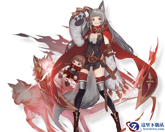 “怀抱一只灰狼布偶的元气少女。虽然不是什么公主殿下,但只要善良勇敢,就能成为童话的主人公哦!”