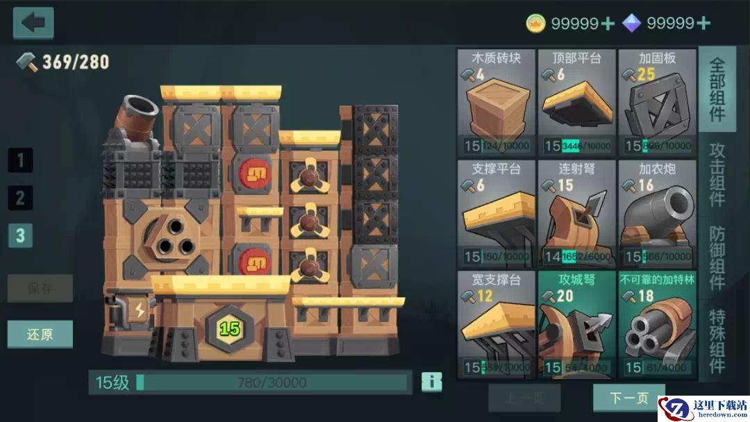这是游戏中非常重要的塔防玩法,这里城堡有不同的组件赋予不同的特性。