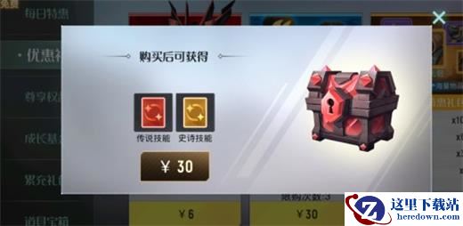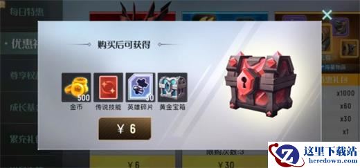 包含金币500+1传说技能+30英雄碎片+黄金宝箱(蕴含20技能(普通)+10稀有技能)