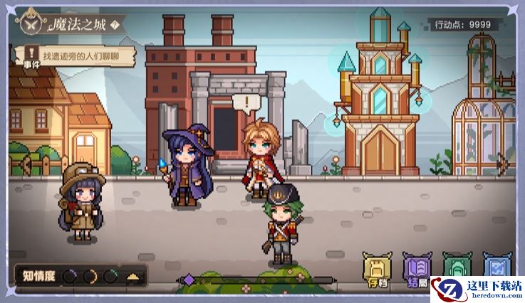 在[魔法之城]内,探索的过程中将会遇到不同的人物,触发剧情、任务、战斗及其他事件。触发结局后可读档回到过去的节点,通过不同的选择触发不同的后续事件。