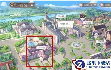 2、校园左边的建筑,就是清音楼了,可以看到黄色头发的艾因头像,就说明已经在那等我们了。