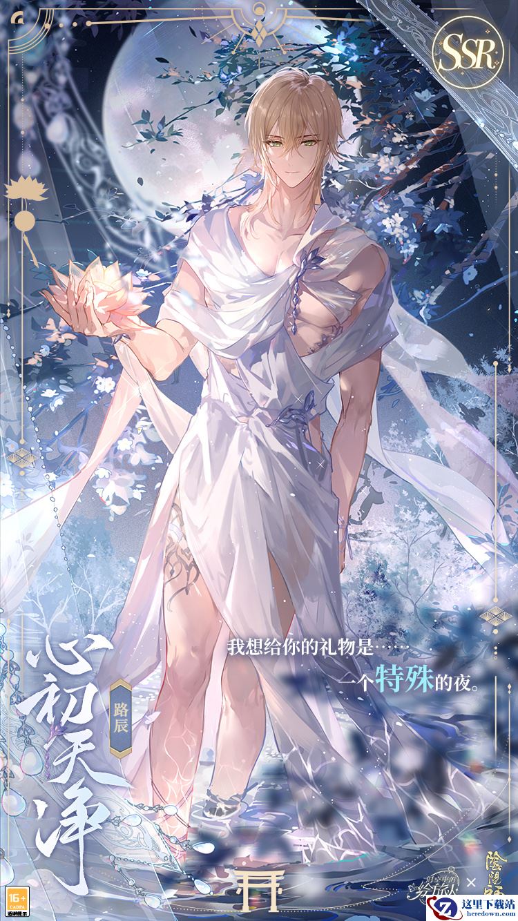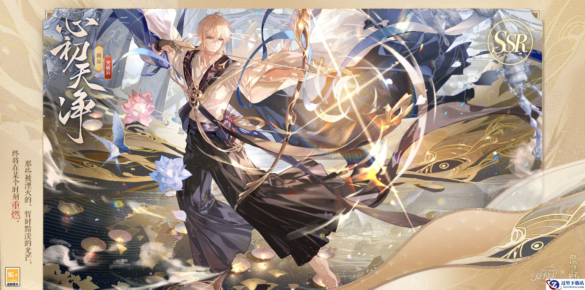 SSR画灵[心初天净]属特殊联动画灵,具备获取时台词特别展示;突破后具备横幅卡面、[流光]效果,可设为登录界面。
