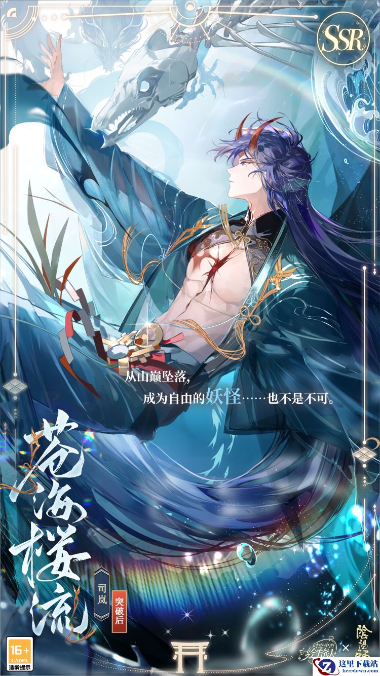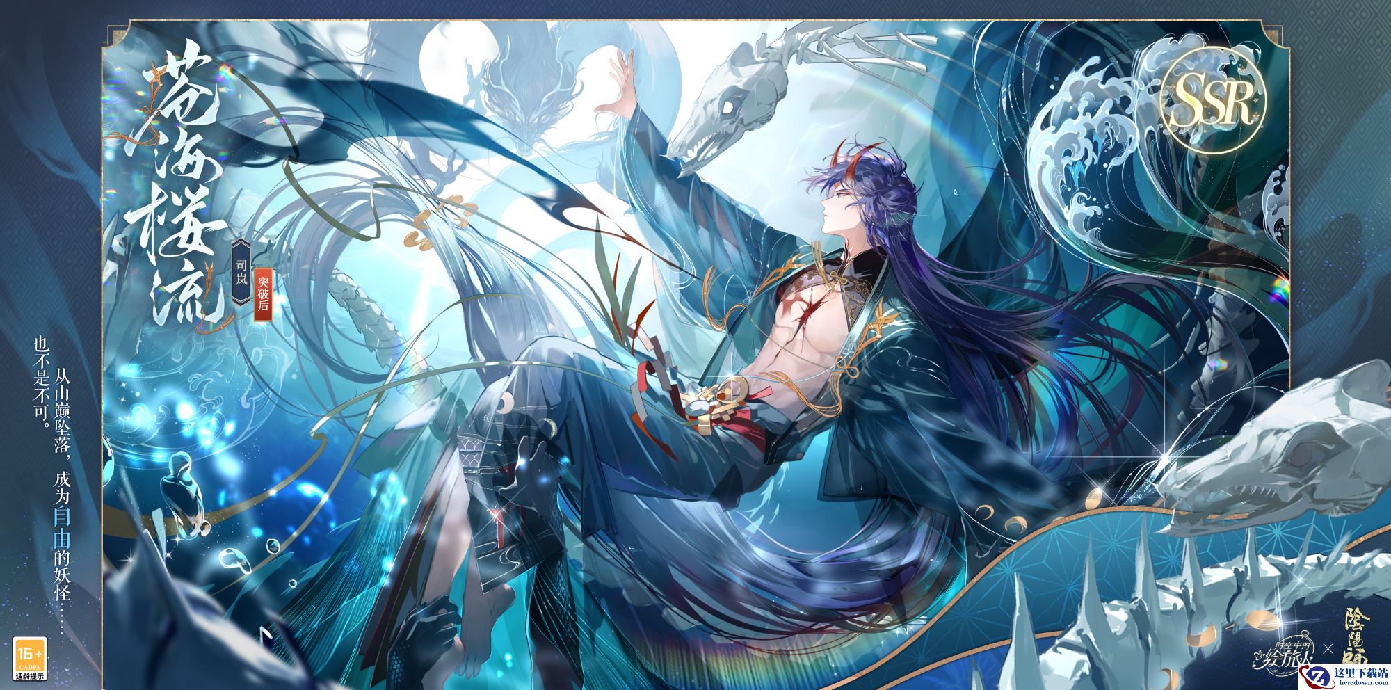 SSR画灵[苍海樱流]属特殊联动画灵,具备获取时台词特别展示;突破后具备横幅卡面、[流光]效果,可设为登录界面。