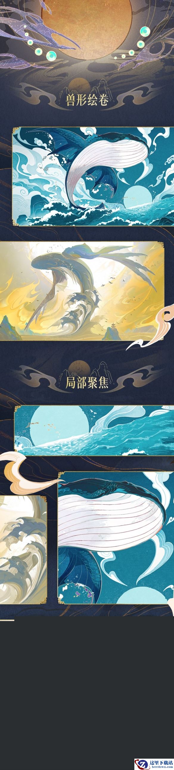 获取[溟海潜歌]时,将自动获得对应的特殊满特技二星绘卷,可从两张兽形态插图中自选1张成为绘卷画面。
