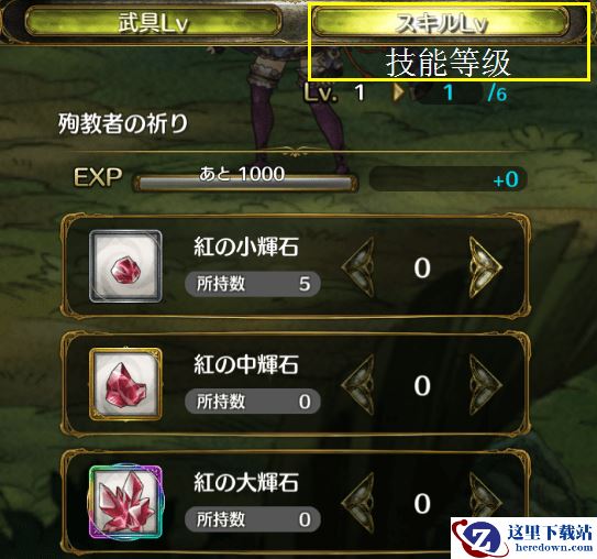 技能Lv:武具技能的等级,用红色蓝色或者绿色的辉石来提升技能的威力,或者是缩短技能的CD,提升效果在装备界面可以查看。(防具和首饰多是百分比数值提升面板数据)