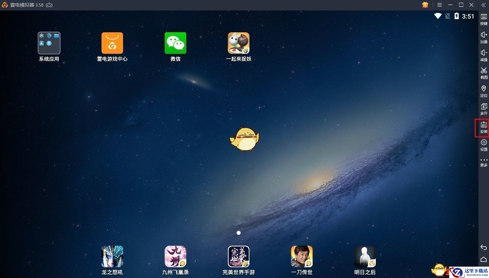 2、如果是已有模拟器,则需要先下载《高能手办团》的apk文件(点击下载《高能手办团》安装包),下载安装包之后,打开模拟器,进入模拟器首页,然后点击侧边的“安装apk”,选择下载的《高能手办团》安装包位置,选择安装就可以了。