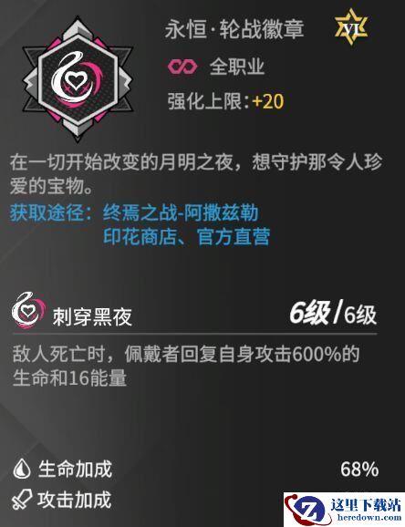 荣耀徽章:可以提高梅根的坦度,增加一次残血开盾反杀的机会