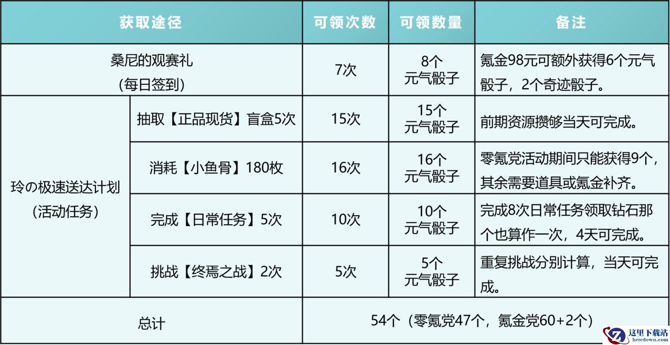 1. 本次活动每日礼包总价值194元,活动期间每日购买共需1358元。氪金总计可额外获得元气骰子77个,奇迹骰子21个。氪金党可以看着买,一般建议小氪领完两轮奖励即可。