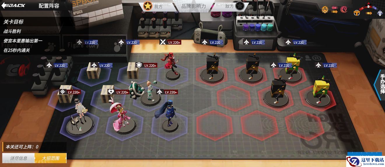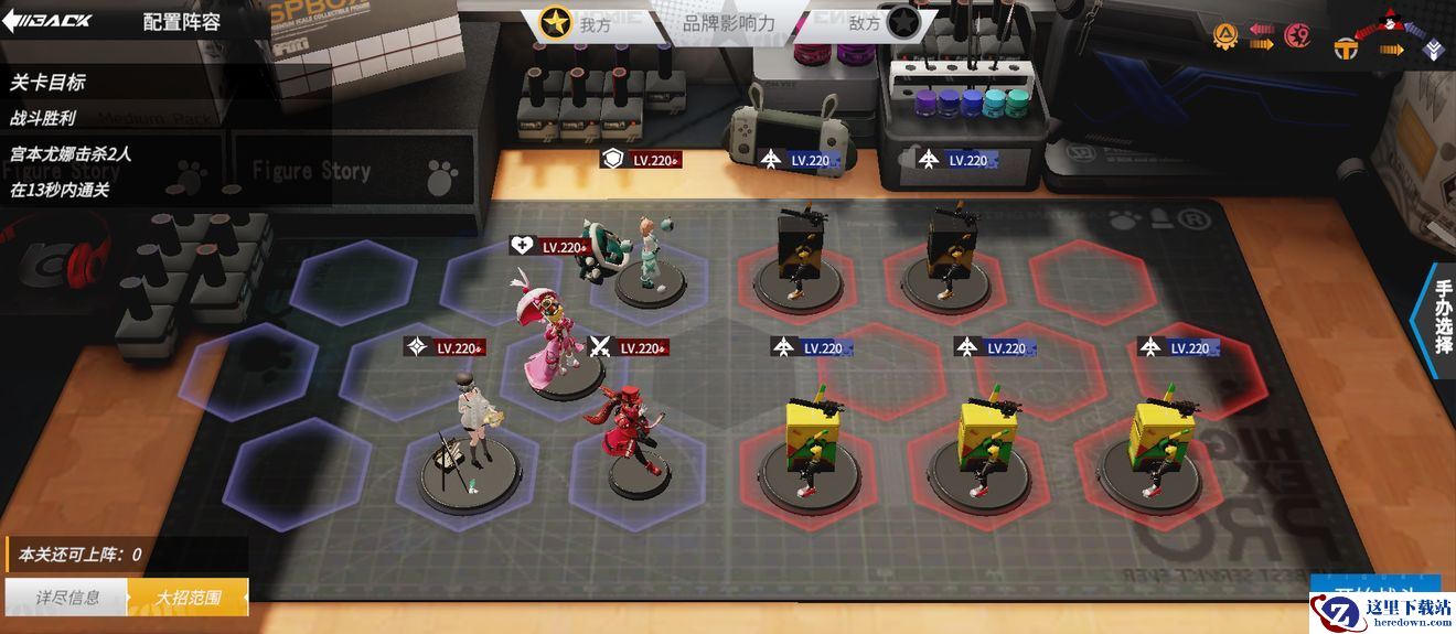 关卡目标:战斗胜利,使莉可输出第一,我方存活4个手办。