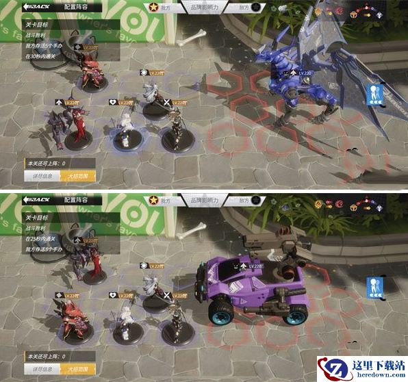 1、图一是困难难度的关卡阵容站位攻略,图二是噩梦难度的通关攻略