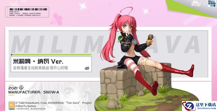 国内首款手办主题潮酷手游《高能手办团》与《关于我转生变成史莱姆这档事》联动正式定档2021年11月5日。那位传说中的“蜜友”,破坏暴君米莉姆大人现已加入FULI旗下设计师品牌「细雪庭」,作为珍品火力手办出来和大家见面啦!各位收藏家,快来拿上蜂蜜夸她可爱吧!