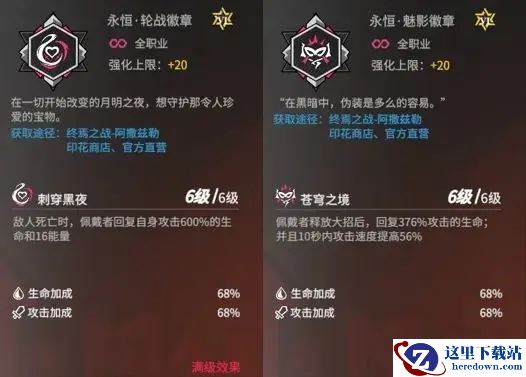 徽章方面,轮战徽章可以让死亡主宰在敌方人员较多的玩法中快速频繁地释放大招,魅影徽章的回复生命和增加攻速属性,则可以有效地在释放大招后通过普通攻击打出超高伤害。