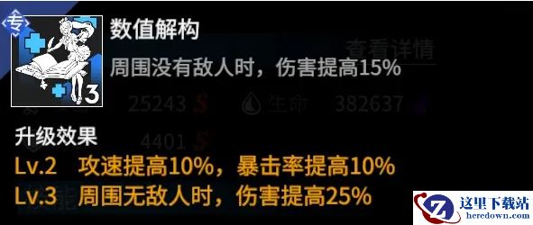 星野结月拥有火力职业专属的被动,在周围没有敌人时提高自身伤害,并且额外提高攻速和暴击率,使她在后方利用被动和元素效果对敌方造成大范围高额伤害。