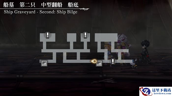 1、向左走,在地板断裂处掉回到“船墓第一只中型船船底”。