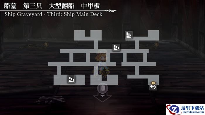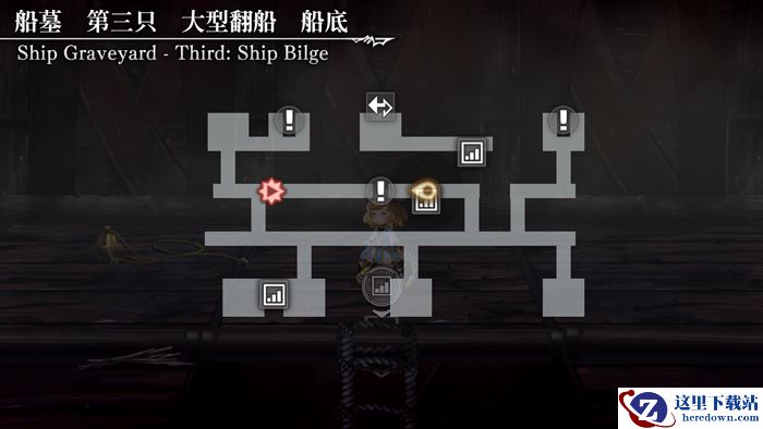 1、向右上方走,在地板断裂处掉回到“船墓第一只中型船船底”。