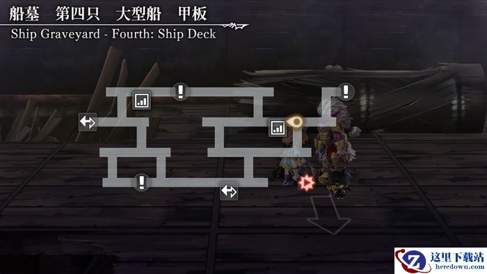 1、在掉落处的左侧,从绳梯爬上,返回“船墓第四只大型船甲板”。