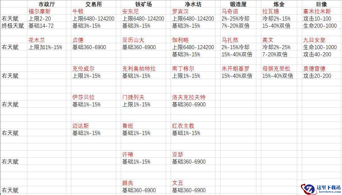 交易所、铁矿场、净水坊都有许多加成主角,其他加成主角要么是没有基础加成,要么是天赋升级难度较高。所以推荐以上主角,免得萌新浪费前期较缺的天赋升级材料。附带资源主角列表: