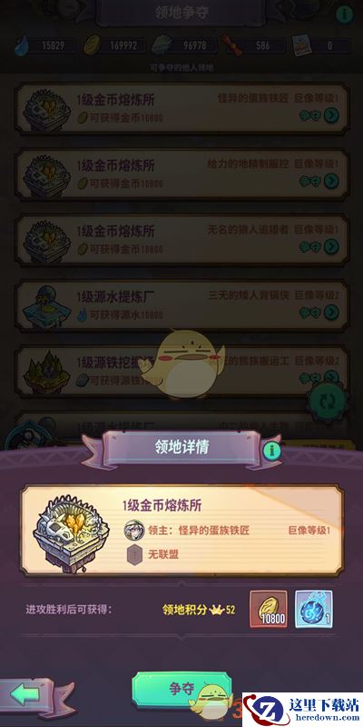 你可以选择其他玩家的城镇设施开始领地争夺,胜利之后可以获取对应的资源和荣誉点。