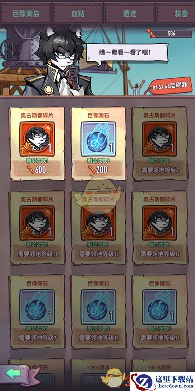 我们定期可以从争夺到的领地中领取资源,并且【荣誉点数】可以在荣誉商店购买到用于升级城镇设施【巨像】等级的巨像源石以及强力SSR【奥古斯都】的碎片以及各种资源。奥古斯是一个非常强力的单体DPS,推荐各位积极兑换。
