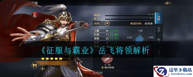 征服与霸业岳飞怎么样?很多小伙伴对于这个将领的玩法不太了解,那么小编就给大家介绍一下,下面小编给大家带来《征服与霸业》岳飞将领解析,还不清楚的小伙伴赶紧来看看吧。
