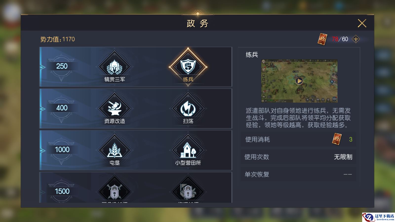 想要快速达到上述要求,我们可以结合自己的兵损情况去选择6级地或者7级地扫荡练级,同时不要吝啬银币,招募大量低星将领转化技能点提高将领技能,同时尽可能的组建同阵营队伍,保证搭配合理,提高对应的文明科技,升级部队器械、阵型,这些额外的加成都能显著提升部队的战斗力。