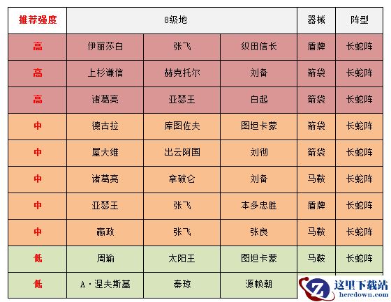 相信大家看到八级地守军的阵容时已经了解到他们的强势之处,张飞、诸葛亮这类优质五星将领都被安排到的守军中,同时守军的将领搭配趋于输出+防守或输出+恢复,逐渐向玩家的正常搭配靠拢,建议大家尽量选择技能联动性较低,将领较弱的野地尝试。