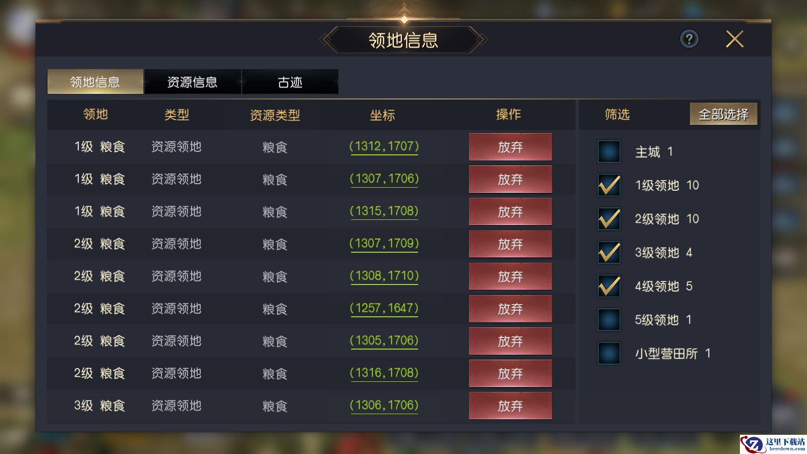 高级土地具有比低级士地更高的资源产量加成以及更高的势力值加成,因此及时更换高级土地十分有必要。由于部队将领在开荒过程中会积累经验升级(战斗力会提升),因此千万不要等低级地达到上限才更换高级地。