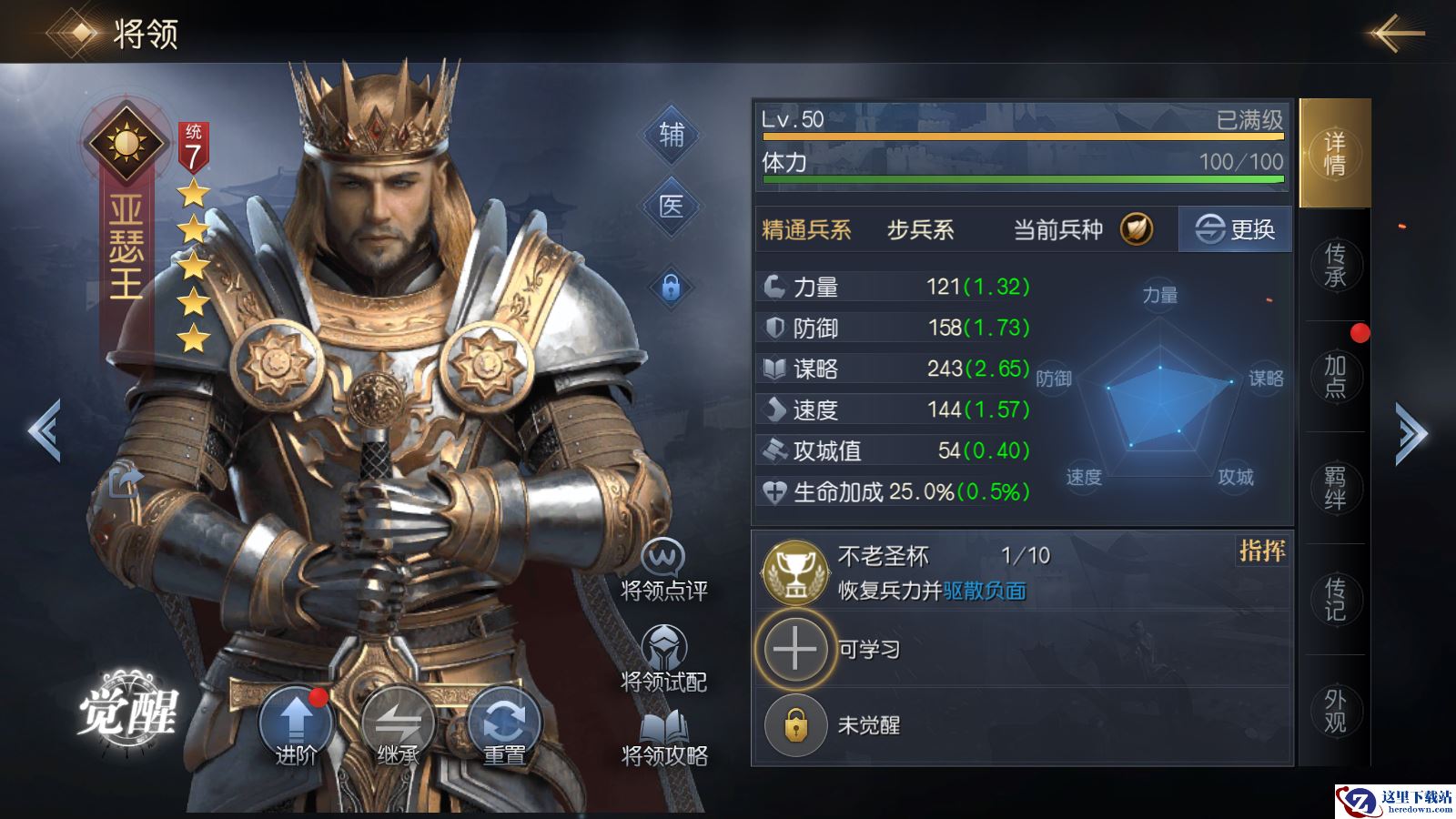 推荐完输出型将领之后,在推荐几个恢复型辅助类五星将领,比如亚瑟王,不仅能够为队友恢复兵力,还有一定概率能够为其驱散负面状态,避免被控;华佗同样拥有极强的恢复能力,在开荒阶段与输出类将领搭配使用效果也十分良好。
