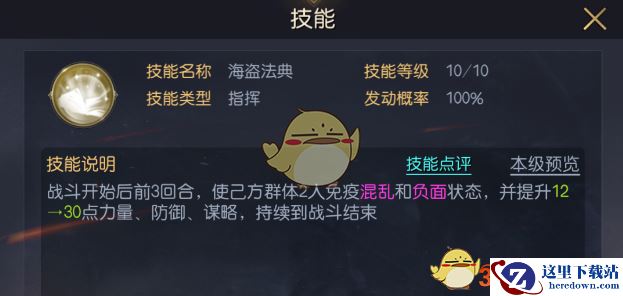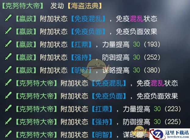 克努特大帝的技能效果比较直观,前3回合为己方群体2人施加负面免疫,并提升30点输出、防御属性,属于完全针对负面队伍的技能,提升效果也比较全面,适配性非常出色。