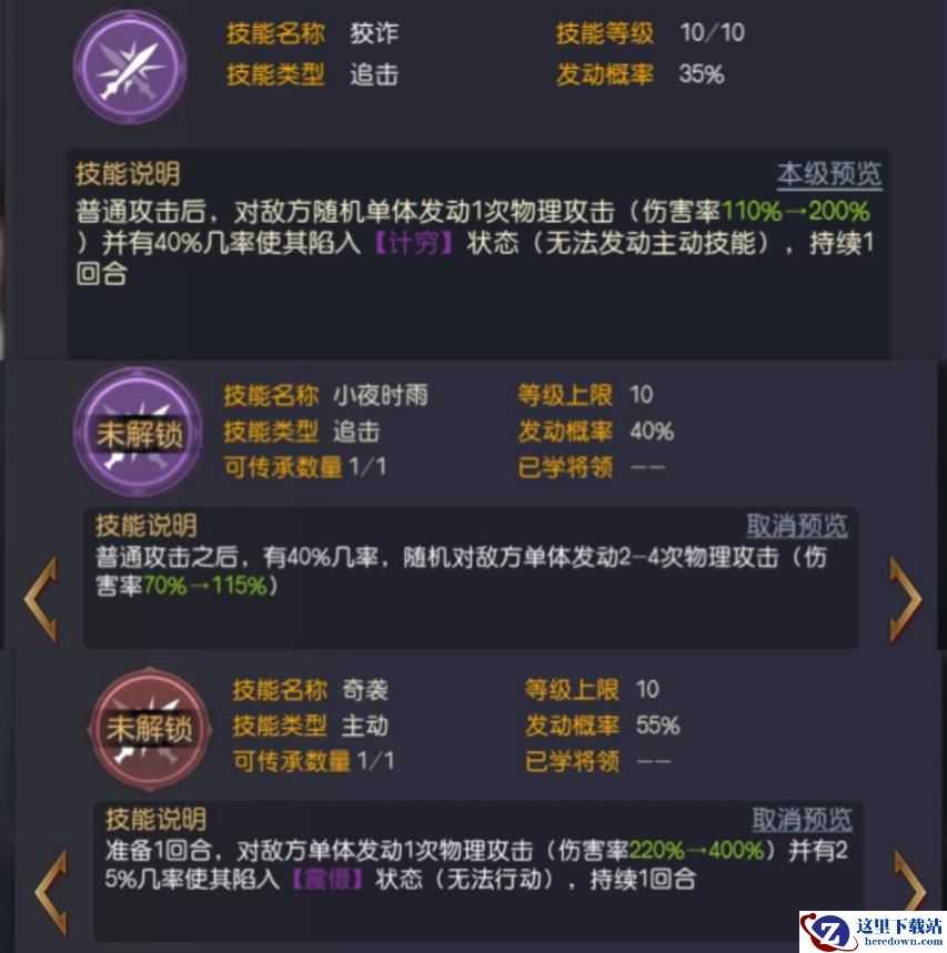 罗伯茨的三技能推荐学习【平叛】。技能效果为:战斗中,自身造成物理伤害时有11%-20%几率使敌方单体被【缴械】,持续2回合。因为罗伯茨的技能都为追击技能,可以打出多段物理伤害,这样使得更容易【缴械】敌方单体,限制他们的输出,且和【击弱】技能相契合,打出额外伤害。