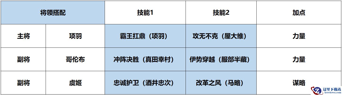 项羽作为一个高品质高力量的将领,前期十分强势。小伙伴们也可以试着搭配不同将领阵容以及技能,依据游戏实际情况应变组合。