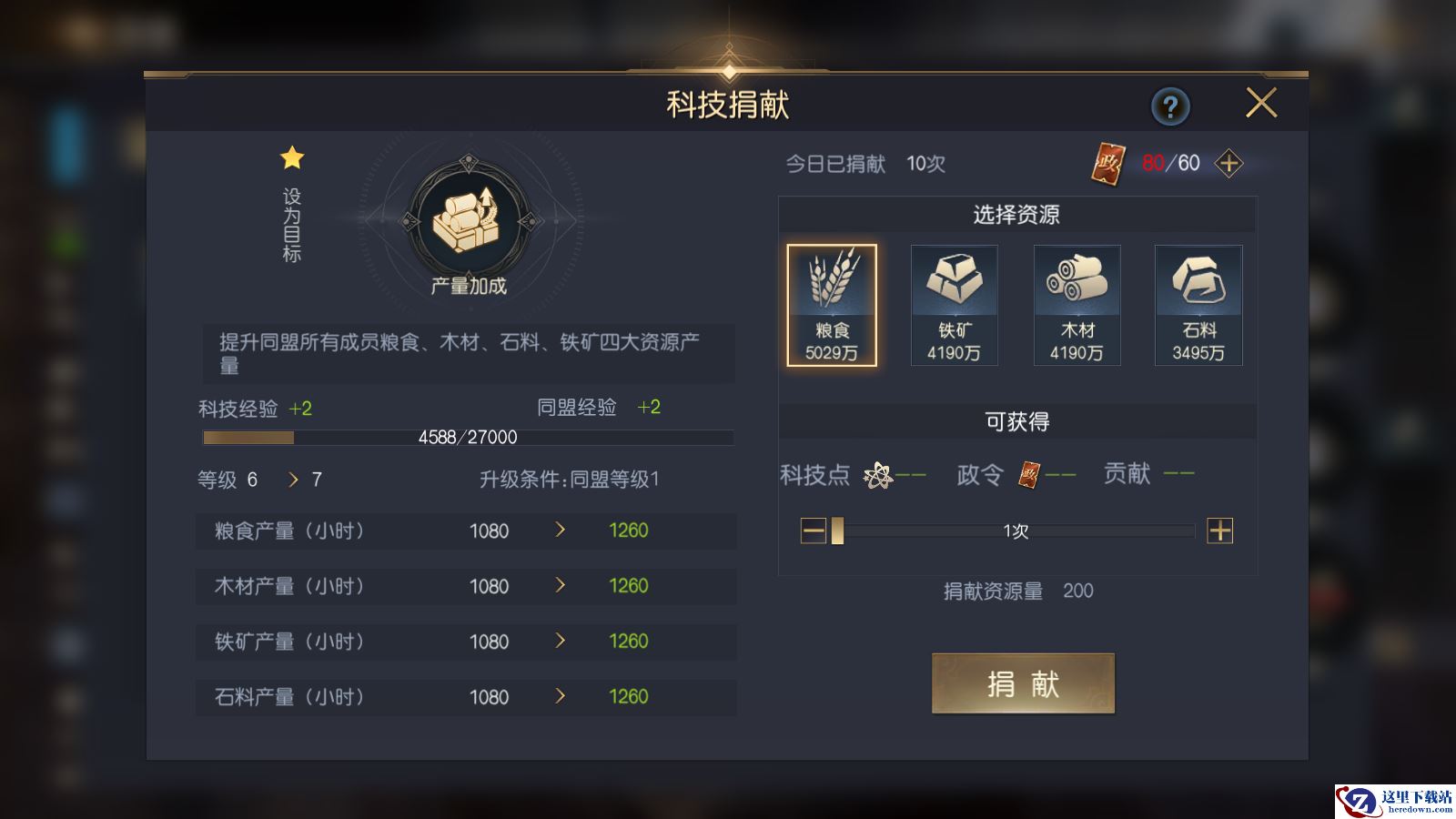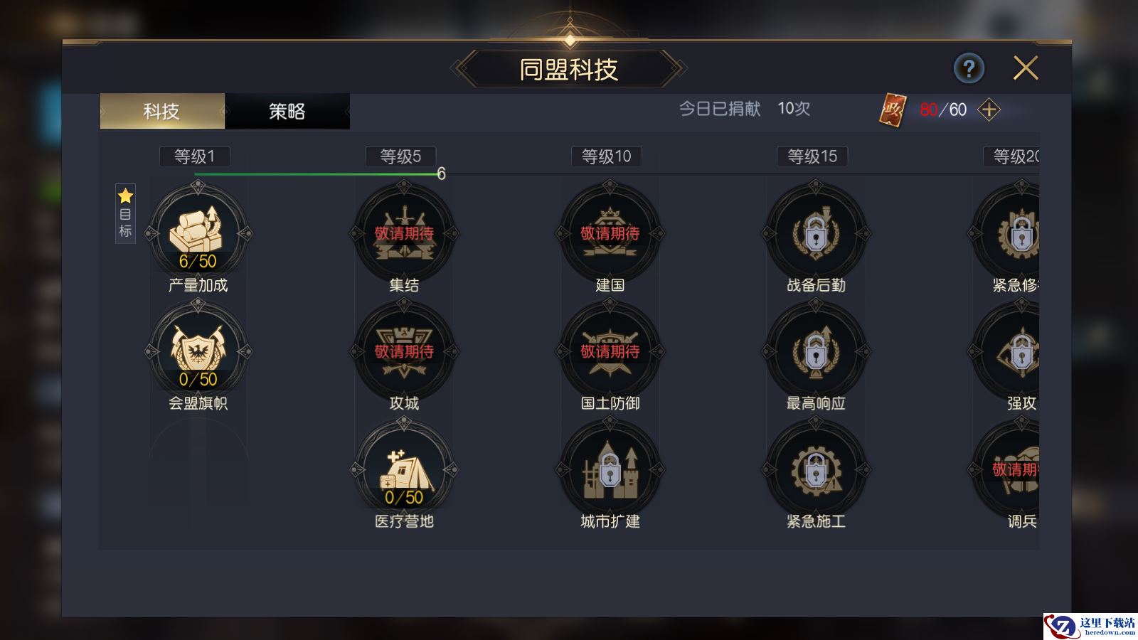 在同盟中,需要通过一定的方式提高自己的贡献,这可能会成为盟主考核我们的指标。贡献度可以通过捐献资源来提升,每达到当前科技升级所需资源的10%进度还能够增加1个个人政令以及1个同盟科技点。所以,务必多为同盟做贡献,捐献资源提升科技等级之后也会带来更高的效果加成哦。