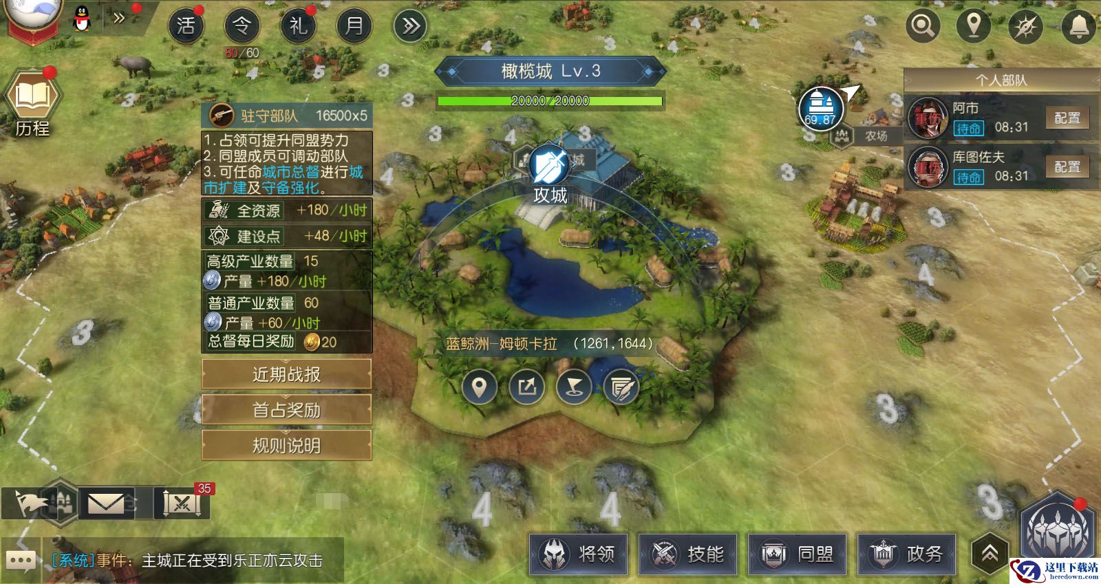 游戏中不仅仅有小伙伴们的城池,还存在着系统城市,攻占系统城市可以获得一定的资源产量加成等效果。但是,只有同盟玩家才能够对系统城市进行攻城。所以,加入同盟相当于解锁了攻打系统城市的新玩法。