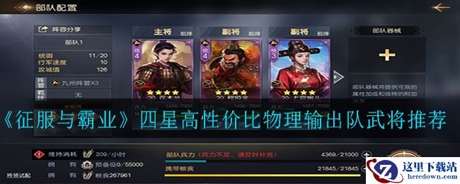 以上就是小编给大家带来的《征服与霸业》四星高性价比物理输出队武将推荐,更多手游攻略请关注手游网!