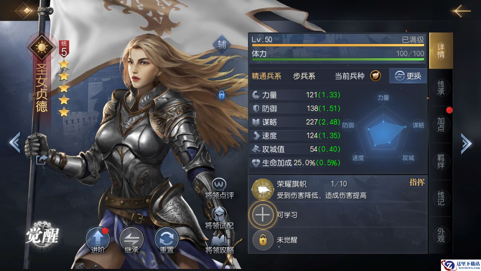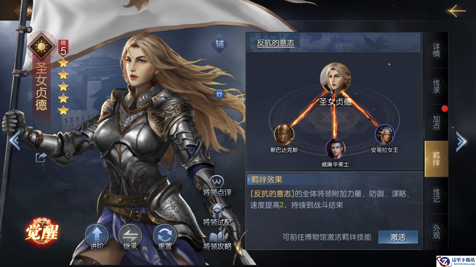 如果小伙伴们招募到相同将领,还可以进行将领进阶,消耗相同将领可进阶一星,从而获得额外的属性点,同时我们在满足觉醒条件后就能使你的将领觉醒,解锁第三个技能栏,拥有三个技能的将领战力会得到质的飞跃。