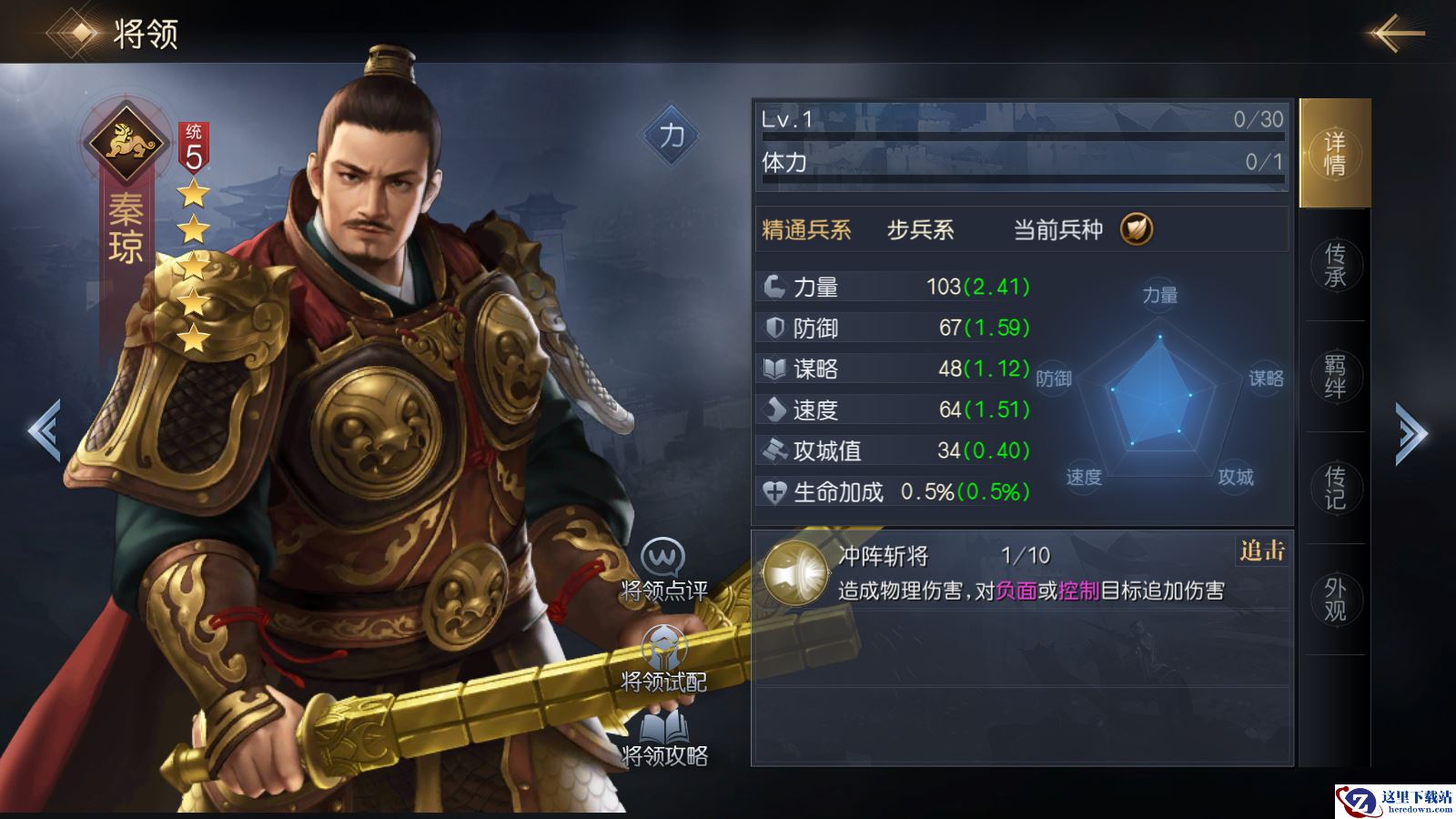 秦琼的技能搭配可以选择【一骑当千】+【伊势穿越】或者【霸王扛鼎】。这些技能都与普攻连击有关,能够优化其自带技能的释放次数,秦琼作为直攻主将的罕见将领,有非常不错的斩首能力。