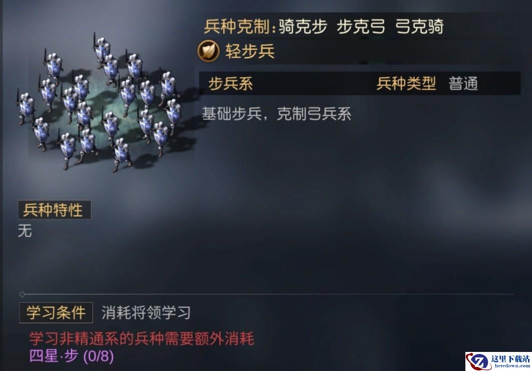 1、【轻步兵】,属于普通的兵种,没有特性。