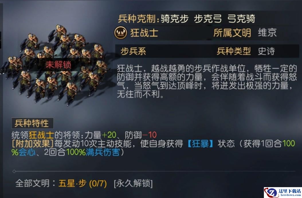 3、【狂战士】,牺牲一定防御力,并获得高额的力量值,在发动10次主动技能后,会获得一个不小的爆发状态,输出伤害有质的飞跃。