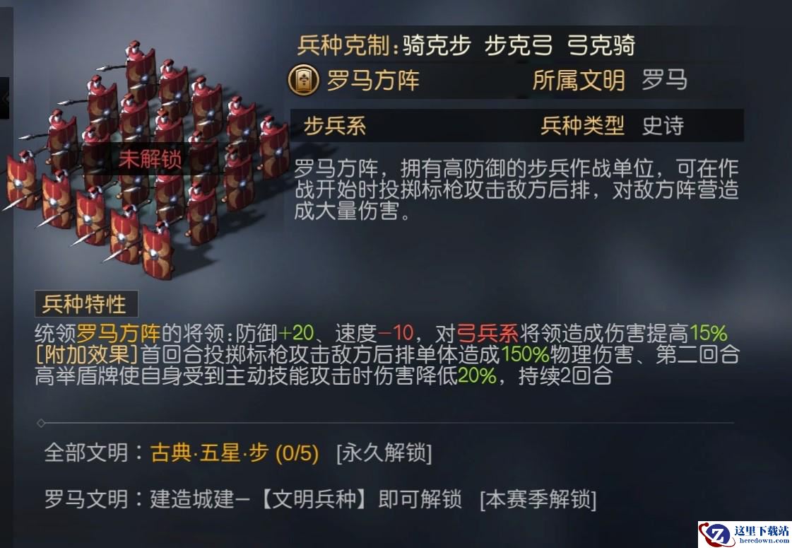 5、【罗马方阵】,拥有高额的防御值,首回合可以对敌方后排发动攻击,对敌方阵营造成大量伤害。